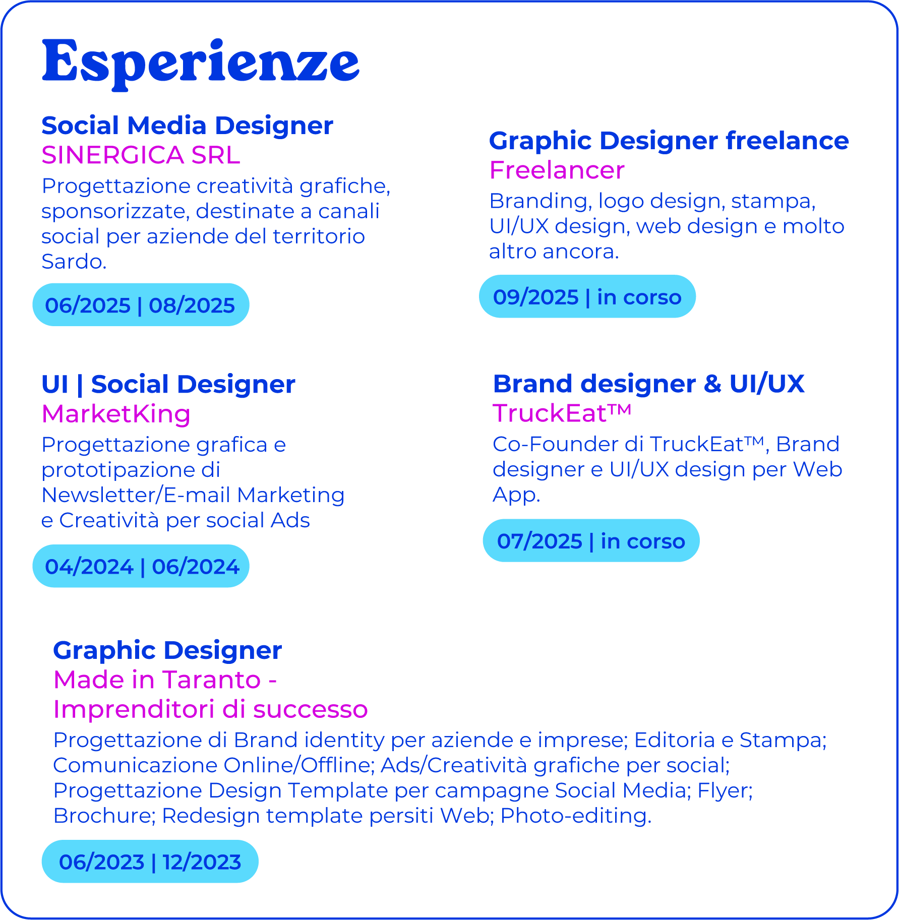 Ciao! Sono Beppe, Graphic designer con una notevole esperienza e una grande passione per tutto ciò che riguarda la comunicazione visiva. Nel mio lavoro, ogni progetto è un viaggio creativo in cui unisco strategia e creatività per dare vita a messaggi che lasciano il segno.Mi occupo di Branding, Logo design, Stampa, UI/UX design, Web design e molto altro ancora. Ogni progetto viene curato con la massima dedizione, perché per me il design non è solo un lavoro, ma un potente mezzo per trasformare le idee in realtà e costruire identità visive uniche.Se state cercando qualcuno che metta anima e competenza nei vostri progetti, sono la persona giusta ;)